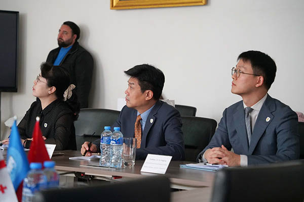ჩინურ დელეგაციას ხელმძღვანელობდა პეკინის უცხო ენათა უნივერსიტეტის ვიცე-პრეზიდენტი, პროფესორი ჭაო კანგი. დელეგაციის შემადგენლობაში ასევე იყვნენ აზიის კვლევების სკოლის დეკანი სუ ინინიგი და ქართული ენის ბაკალავრიატის პროგრამის დირექტორი იუენ პო.