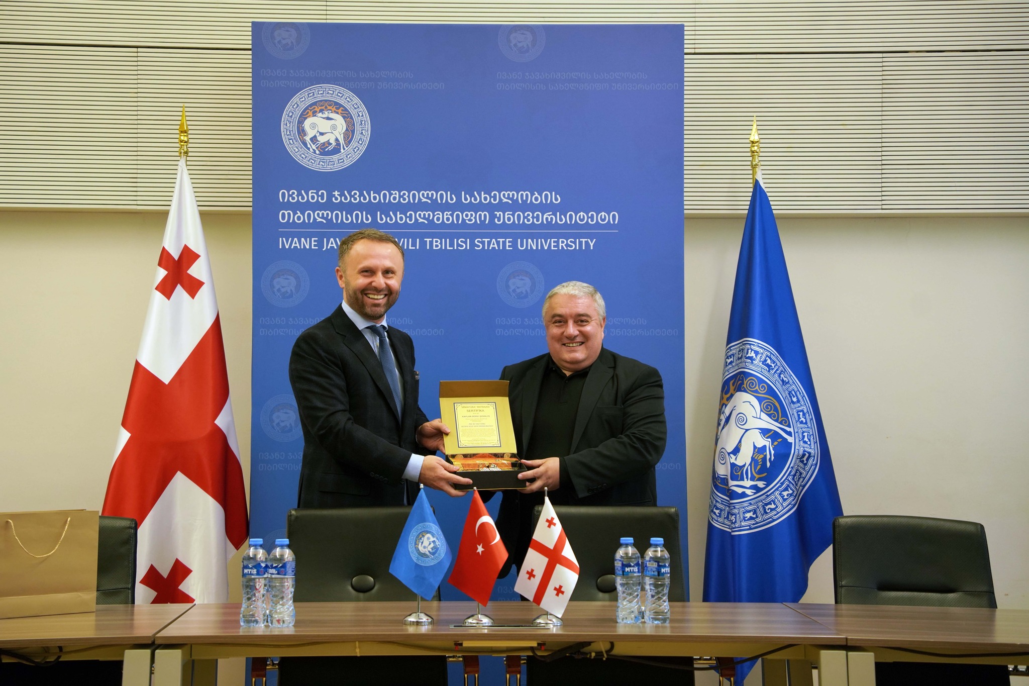 Academician Jaba Samushia, the Rector of Ivane Javakhishvili Tbilisi State University, hosted Yusuf Yilmaz, the Rector of Recep Tayyip Erdoğan University (Rize University) of the Republic of Turkey, and other university representatives.